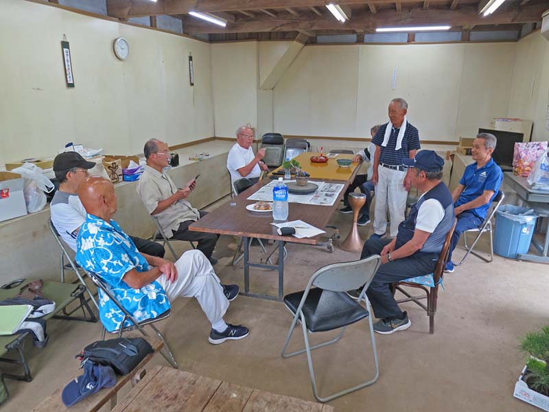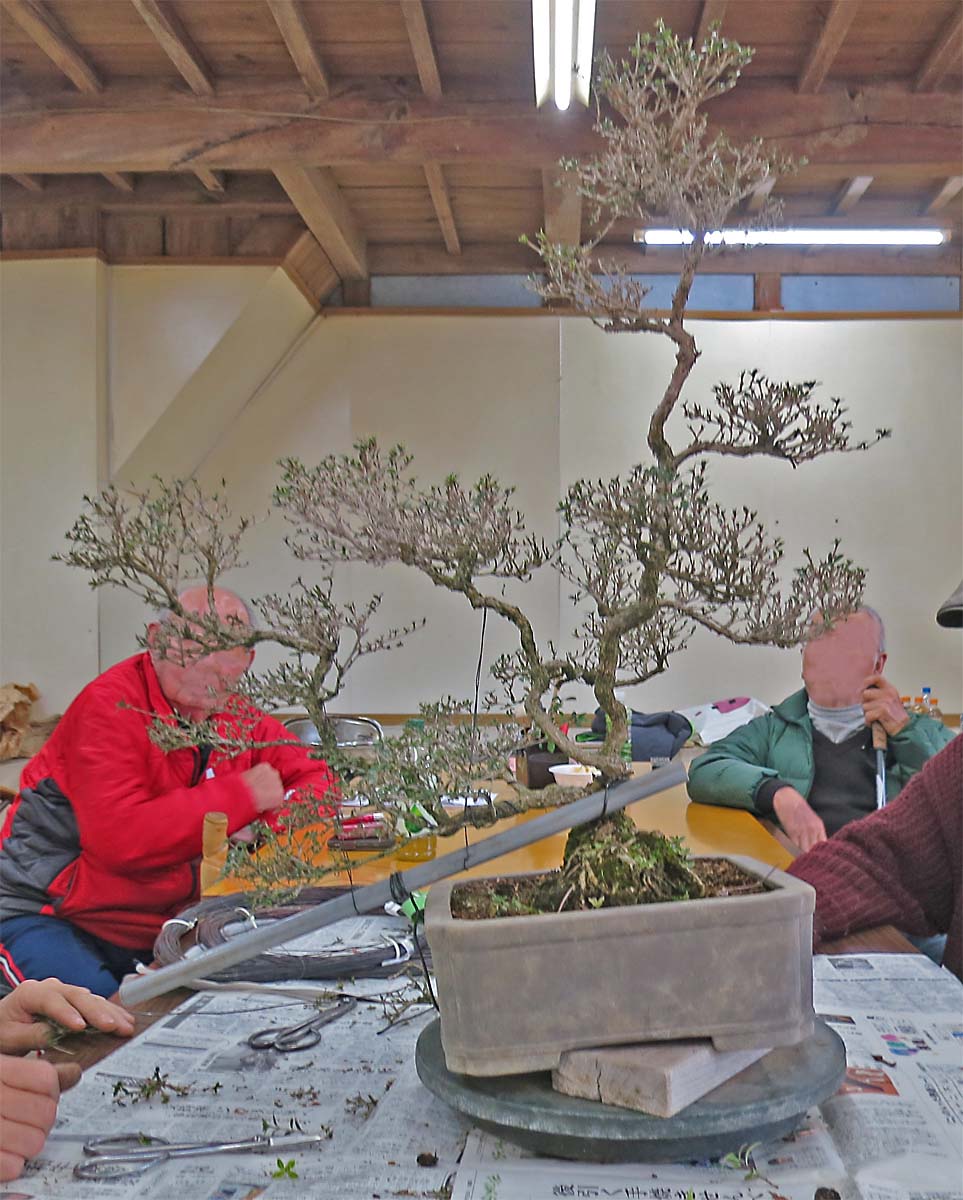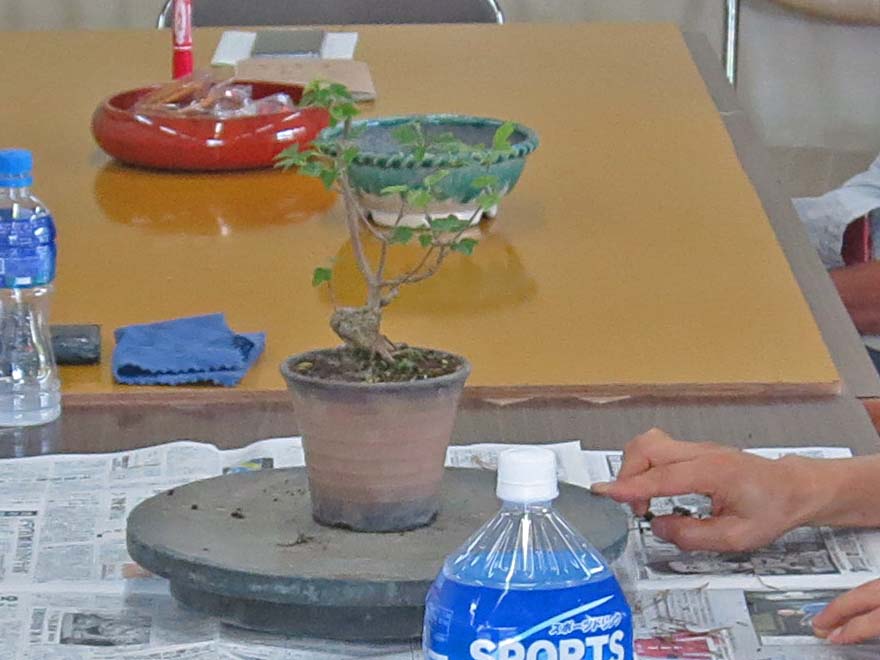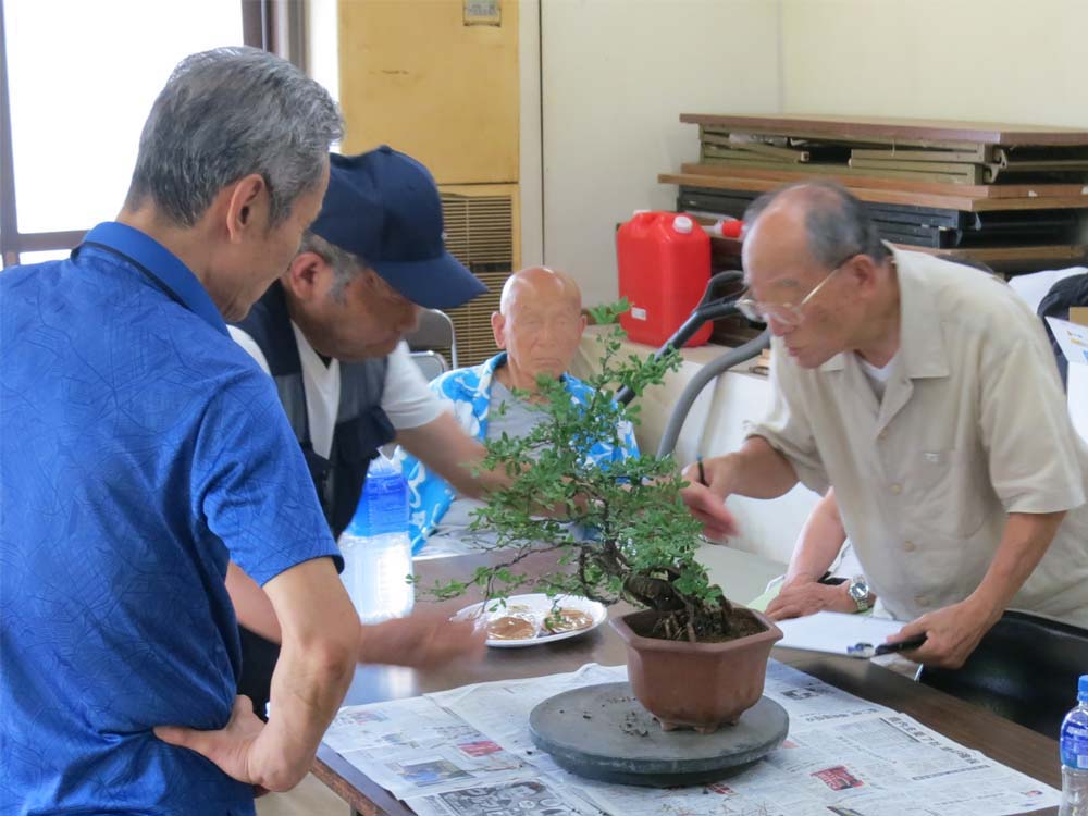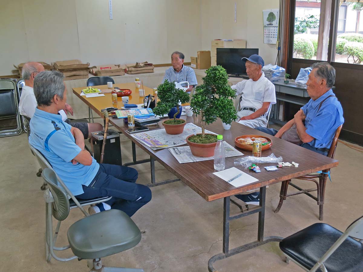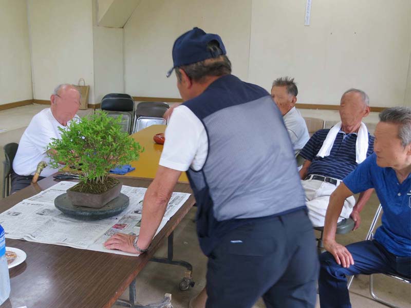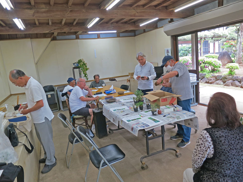 適宜、自分の盆栽を持ってきて、作業や歓談など