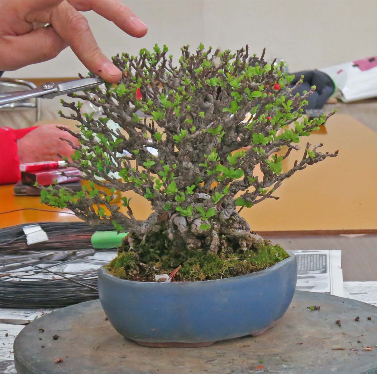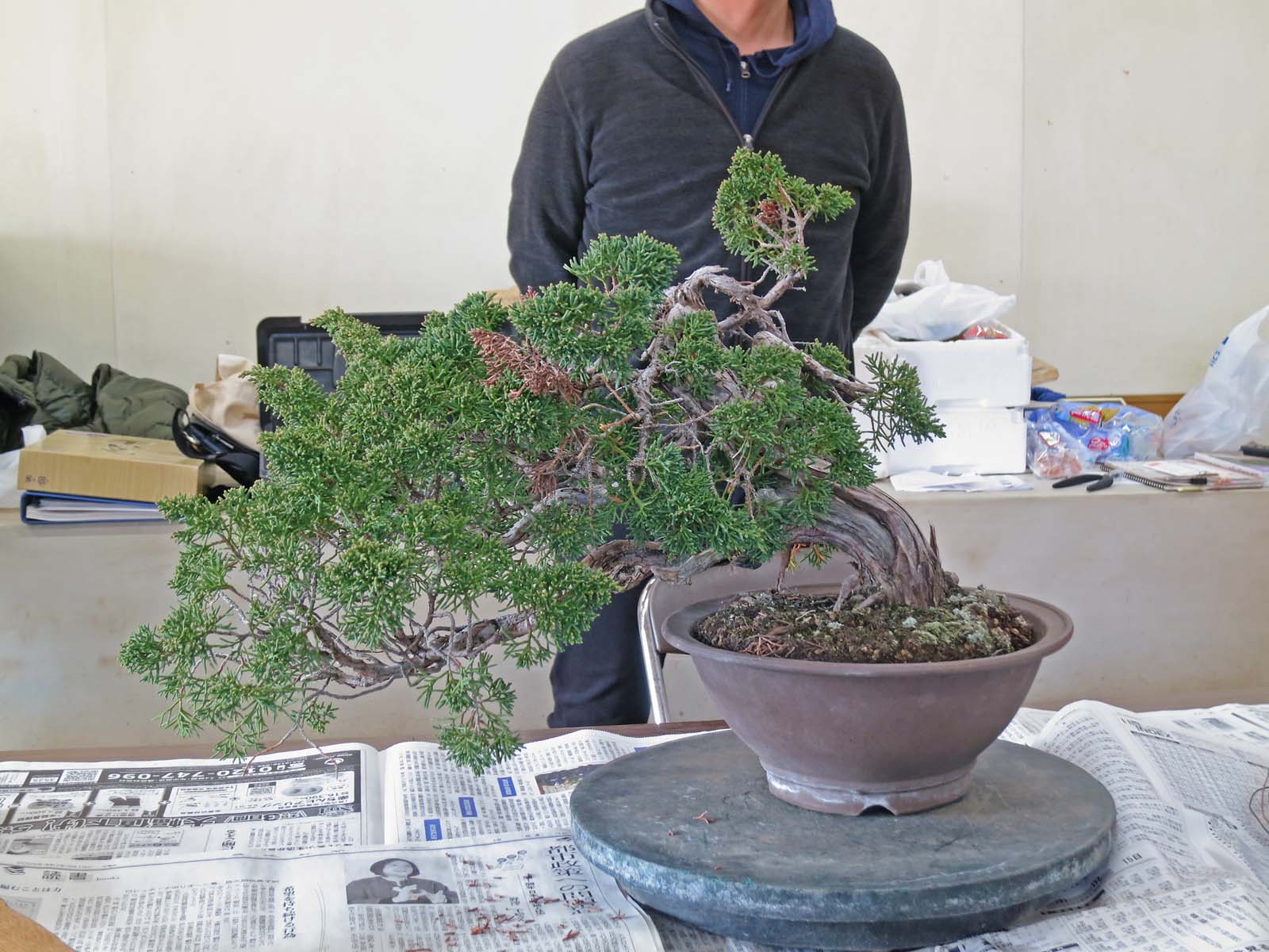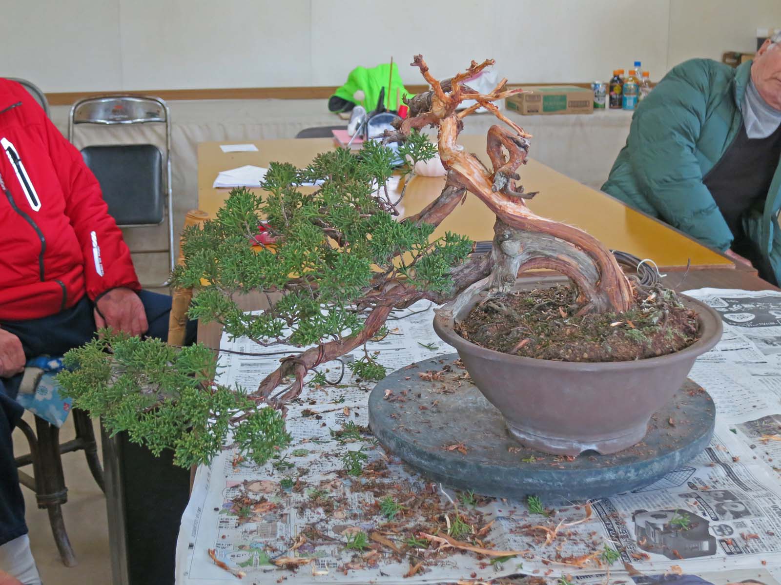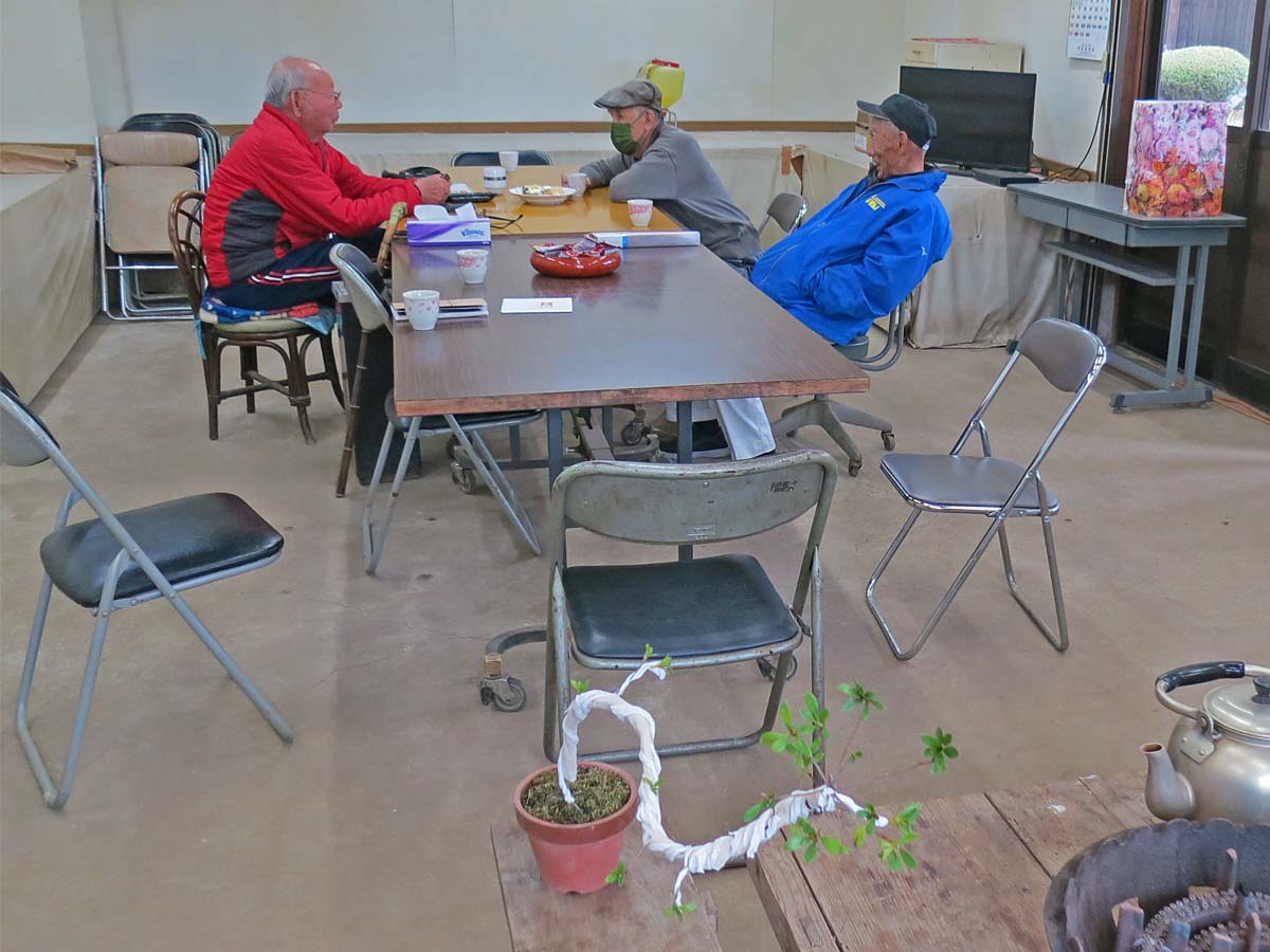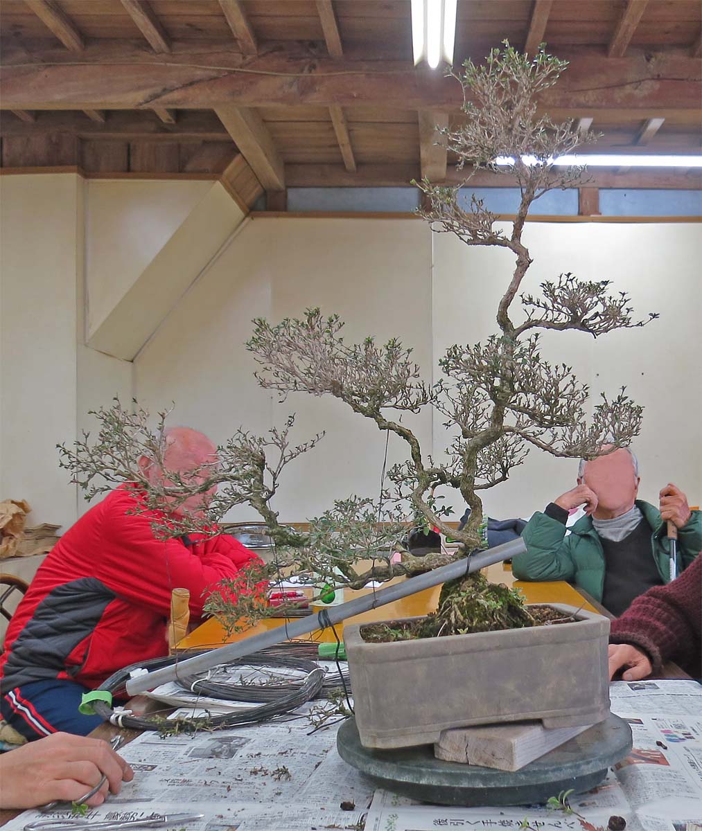 適宜、自分の盆栽を持ってきて、作業や歓談など